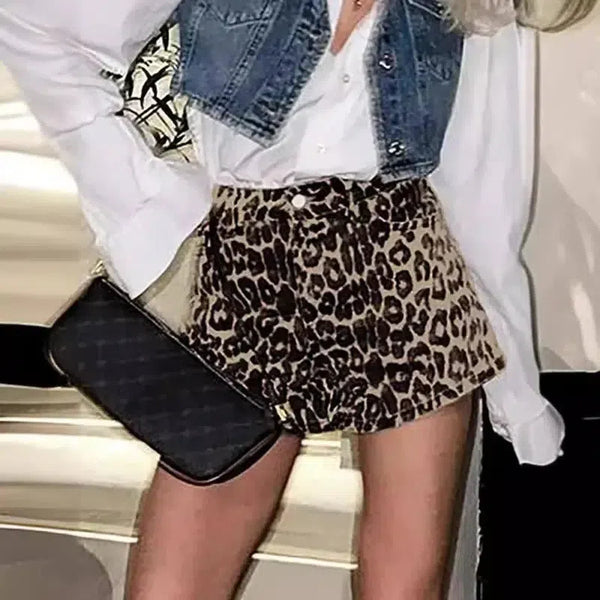 Aoaiiys spodenki w panterkę damskie krótkie spodnie dżinsowe na co dzień