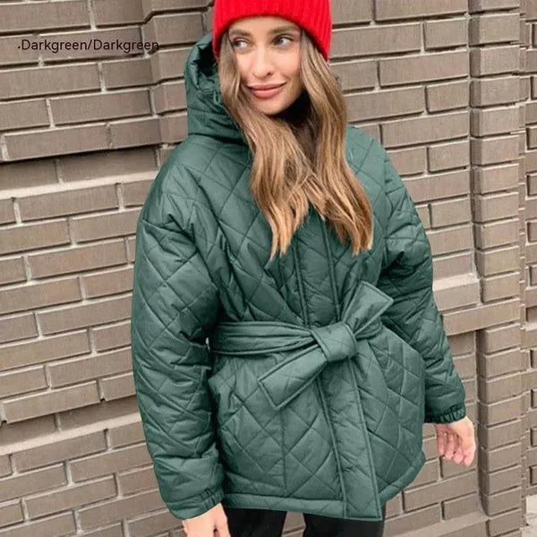 Bawełniana kurtka z kapturem, wąski krój, sznurowane klapy, długi rękaw
