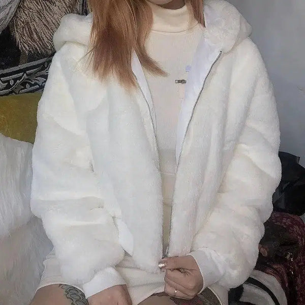 Opis produktu: Casual Plush Hooded Short Plush Coat for Women