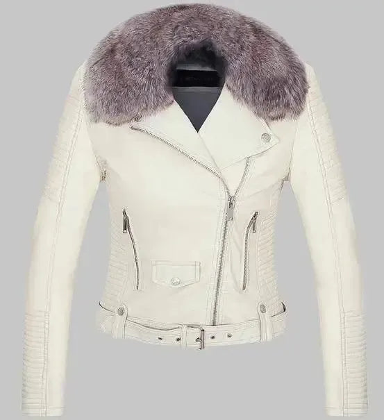 ODPINANY FUTRZANY KOŁNIERZ, CIEPŁA KURTKA ZE SZTUCZNEJ SKÓRY