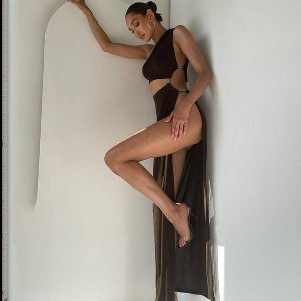 Damska sukienka na ramiączkach Dignified Hollow Sloping Shoulder Dress