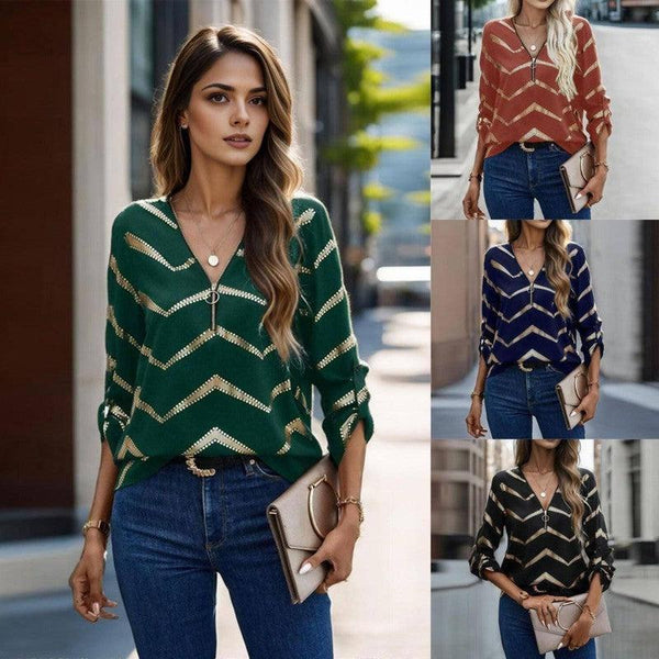 Damska koszula w paski z długim rękawem i dekoltem w szpic