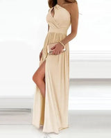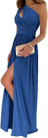 Elegancka koszulka damska na jedno ramię bez rękawów z wysokim rozcięciem