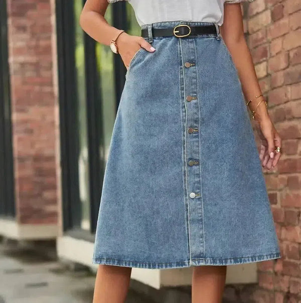 Opis produktu: All-Matching Slimming Washed Denim Breasted Skirt for Women
