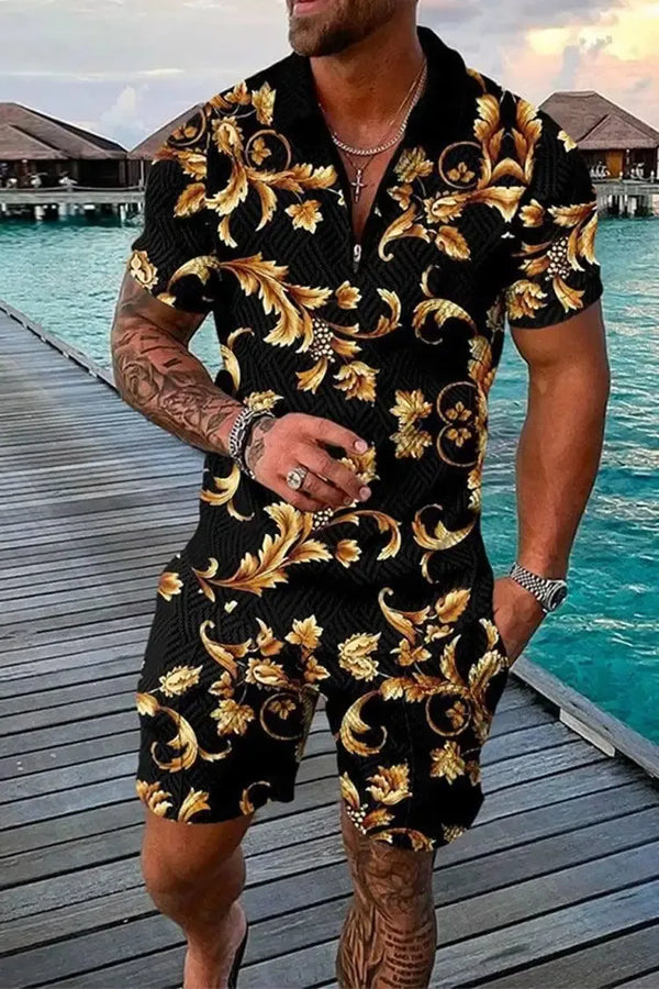 Opis produktu: Men's Fashion Print Lapel Zipper Two-Piece Suit