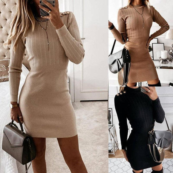 Dzianinowa krótka spódnica z biodrami Damski sweter z dzianiny z długim rękawem