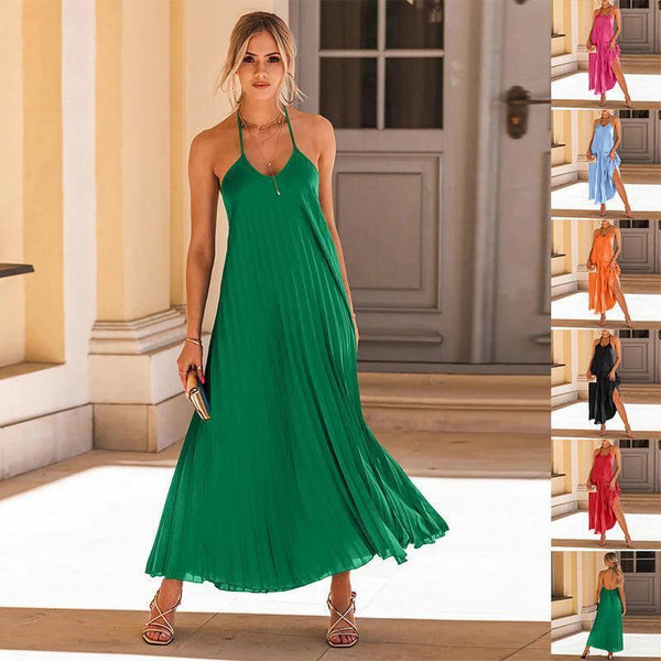 Modna plisowana długa sukienka o linii A z szelkami Summer Casual