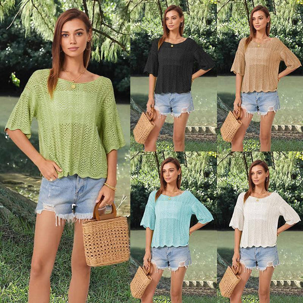 Dzianina damska z krótkim rękawem w stylu hollow fashion