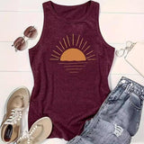 Kamizelka z okrągłym dekoltem i nadrukiem wschodu słońca, wiosenno-letnia, na co dzień