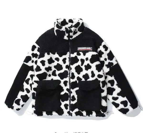Kamuflaż Panda Cow Spotted Lamb Wool Coat Męski i Damski