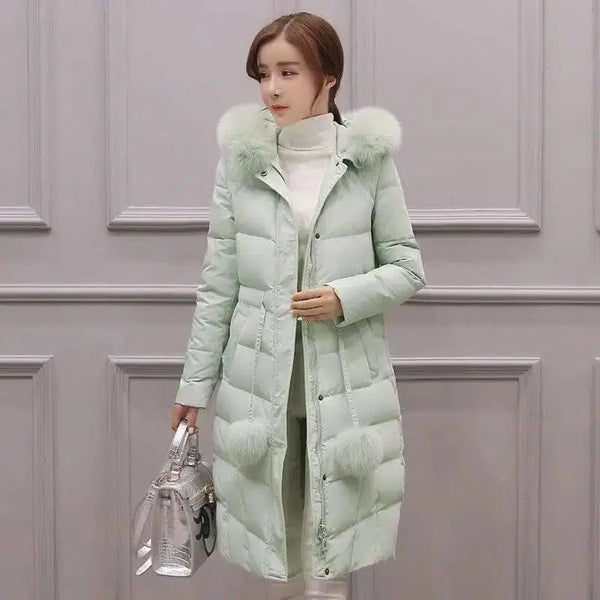 Koreański puchowy płaszcz damski wyściełany bawełną za kolano