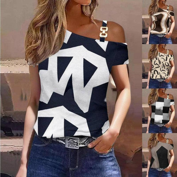 Damska letnia, prosta, metalowa klamra z krótkim rękawem i nadrukiem