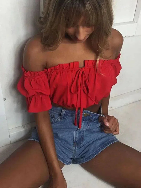 Krótkie bluzki damskie letnie, z rękawami typu latarnia, bez ramiączek