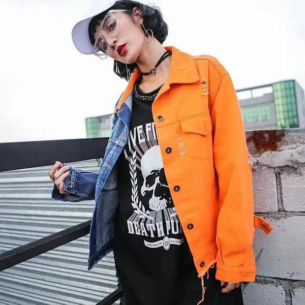 - Typ odzieży: Kurtka dżinsowa w kolorowe paski