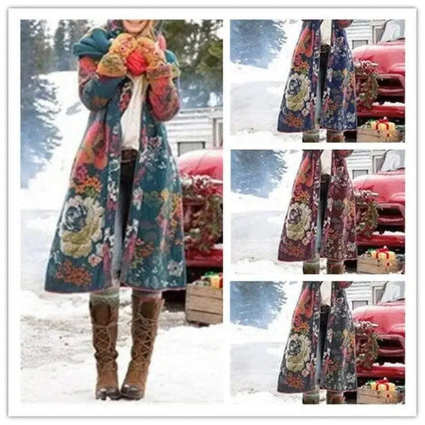 Opis produktu: Damska kurtka z nadrukiem w stylu dworskim o średniej długości z grubym kapturem