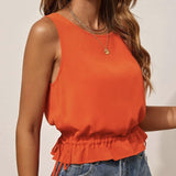 Ladies' Solid Color Ruffle Hem Sleeveless Vest Top with Waist Drawstring