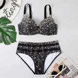 Letnie bikini damskie stroje kąpielowe z wysokim stanem i push-up