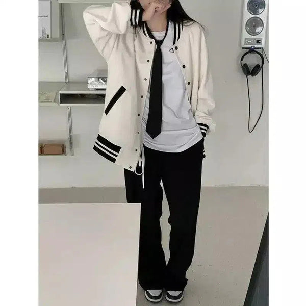 Kurtka Varsity z mankietami w paski i zapięciem na zatrzaski