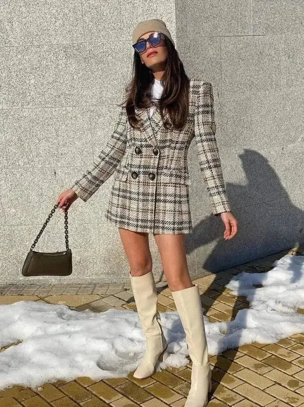 - Rodzaj odzieży: Sukienka mini w stylu marynarki w kratę