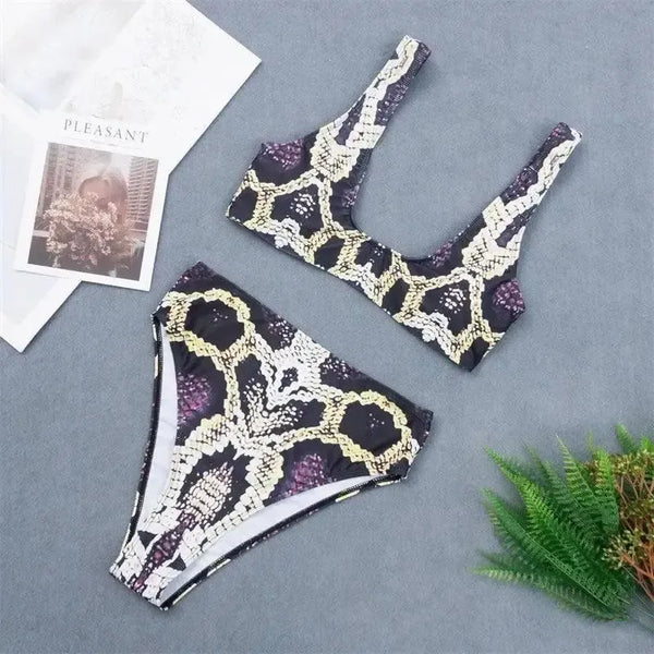 - Design: Dwuczęściowy zestaw bikini ze stylowym zwierzęcym nadrukiem.