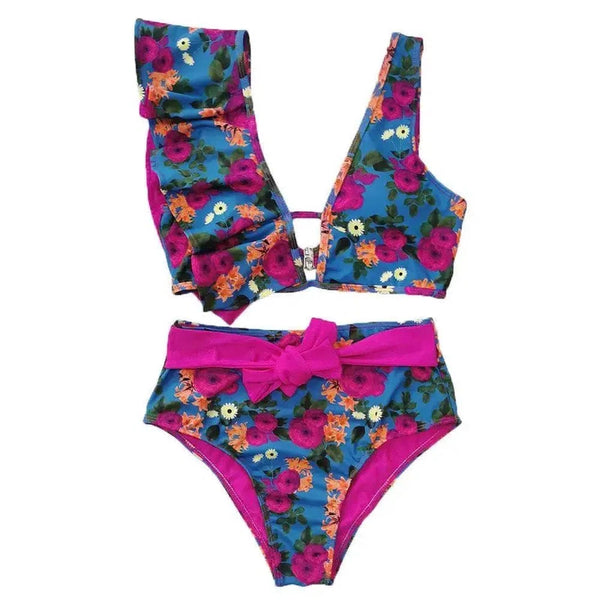 - Rodzaj produktu: Asymetryczny kostium kąpielowy z falbankami w wysokiej talii