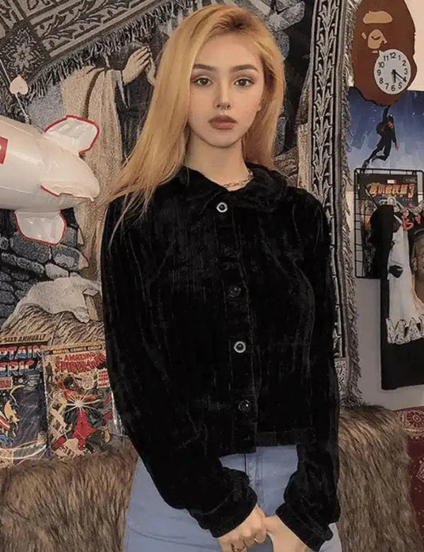 Aksamitna kurtka damska zapinana na guziki