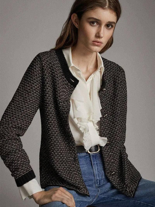 Czarny teksturowany kardigan z długim rękawem, krótki płaszcz