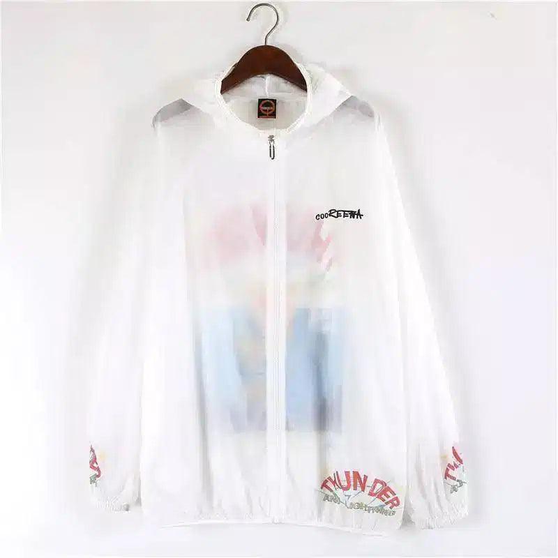 - Szczegóły projektu: Żywy nadruk graficzny z napisem "THUNDER" i kolorową grafiką na plecach