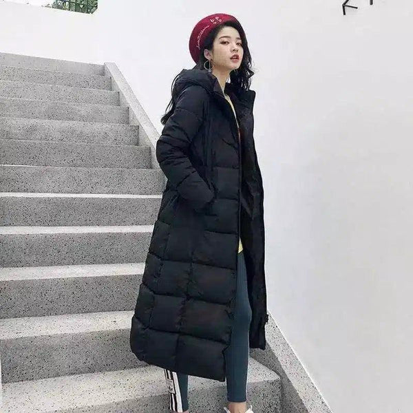 Zimowa długa kurtka puchowa z kapturem dla kobiet