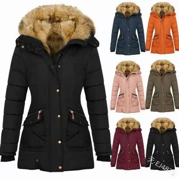 - Styl dekoltu/ramion: Kaptur z wykończeniem ze sztucznego futra
