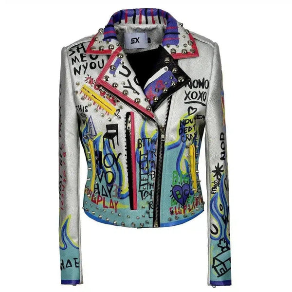 - Cechy charakterystyczne: Odważna grafika z ćwiekami