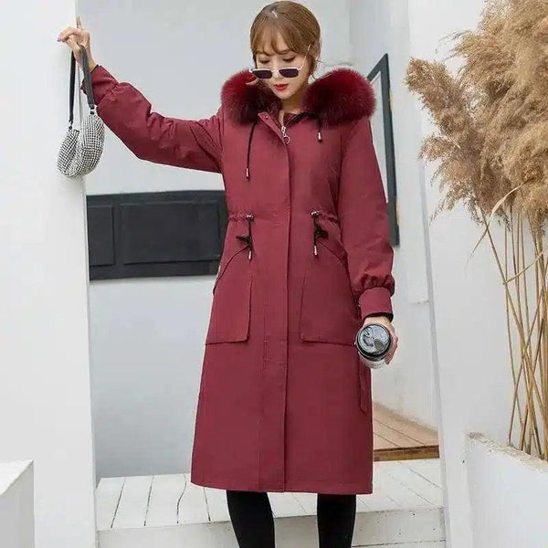 Damski płaszcz zimowy z futrzanym kapturem