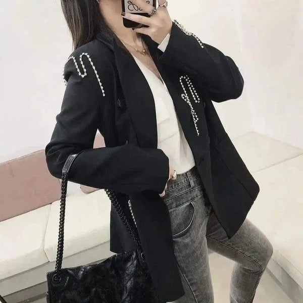 - Odważna deklaracja mody: Odważny czarny kolor tego blezera i kontrastujące perłowe detale z pewnością wyróżnią się w każdym otoczeniu.