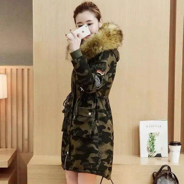 Zagęszczona bawełniana kurtka ocieplana, damski kołnierz zimowy