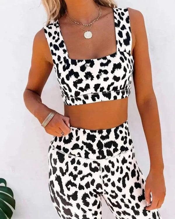 Ten stylowy crop top ma odważny wzór w panterkę, idealny do modnego i sportowego wyglądu.