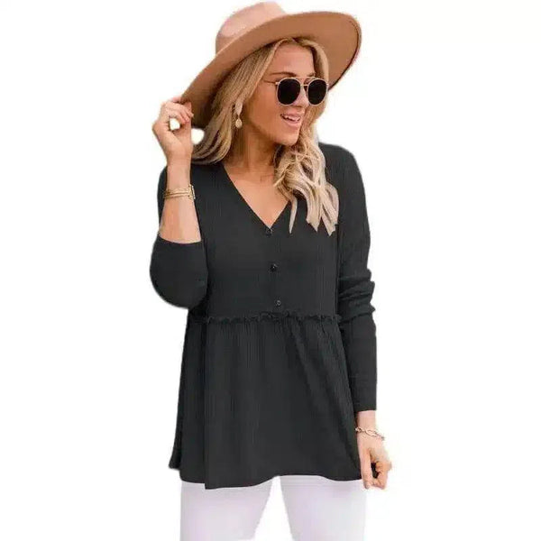 - Dekolt: Dekolt w kształcie litery V z kołnierzykiem