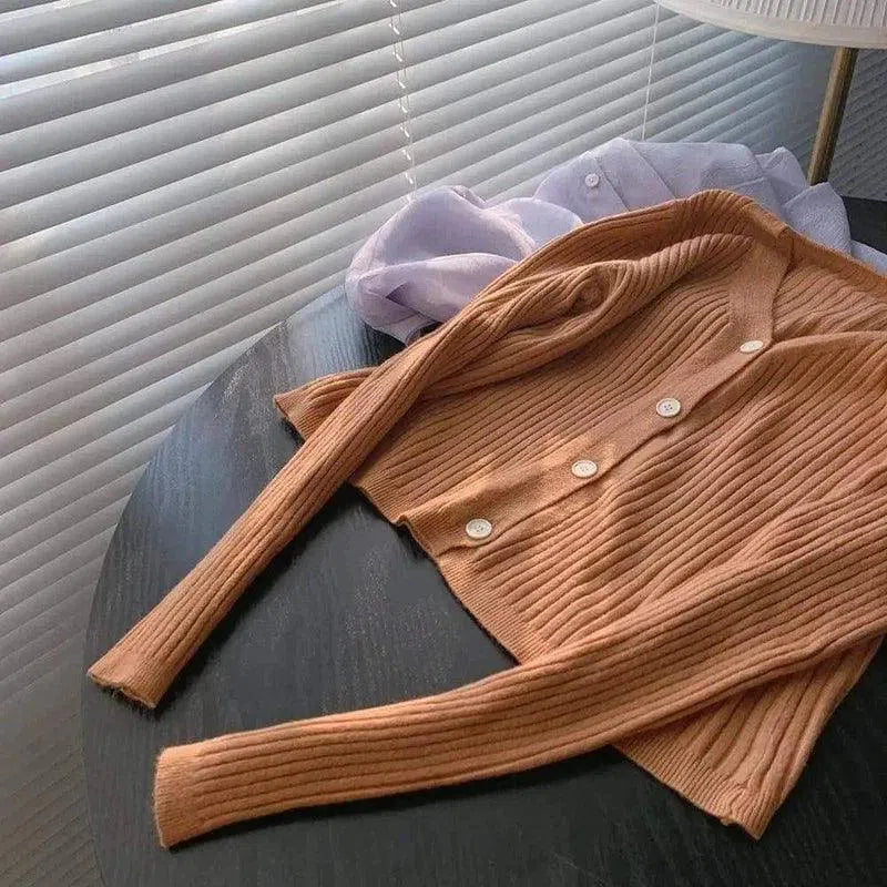 Przytulny kardigan z prążkowanej dzianiny z guzikami