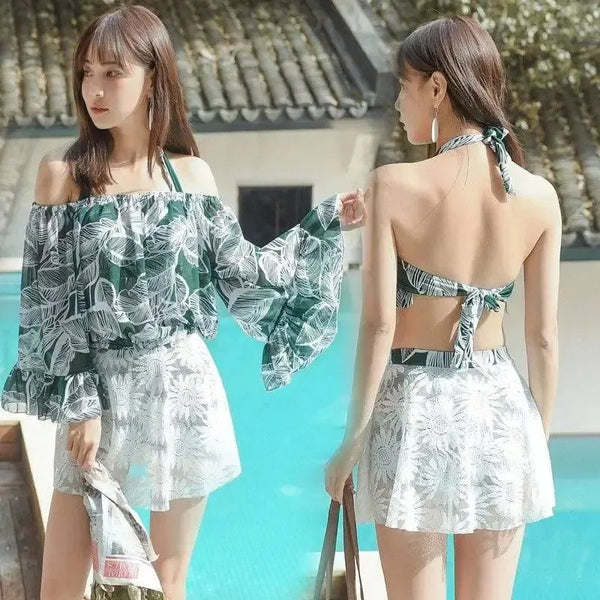 - Design: Trzyczęściowy kostium kąpielowy ze strategicznym marszczeniem dla lepszego zakrycia brzucha.