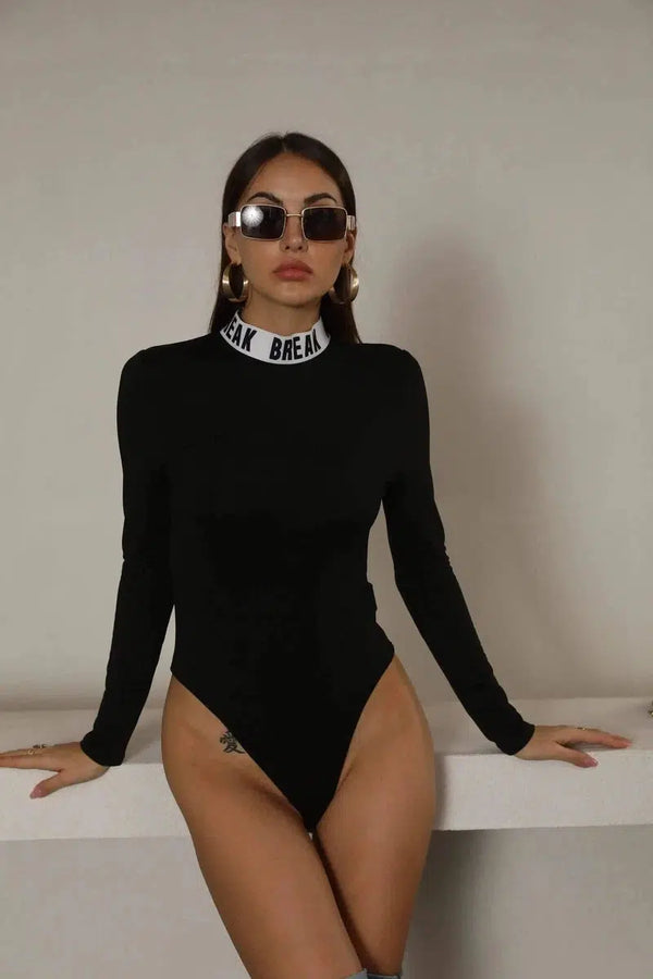 - Dekolt: Wysoki dekolt z markowym kołnierzykiem