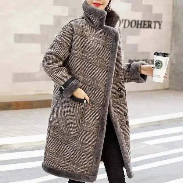 Koreański temperament plus aksamitny gruby wełniany płaszcz średniej długości