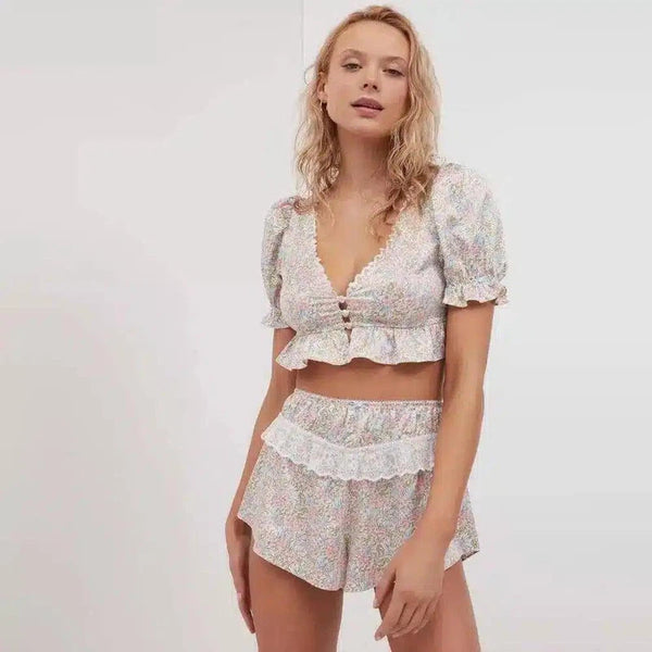 - Rodzaj odzieży: Dwuczęściowy zestaw zawierający przycięty top i pasujące szorty