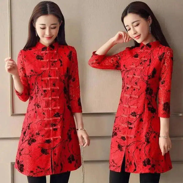 Tradycyjna damska sukienka Cheongsam w kwiaty