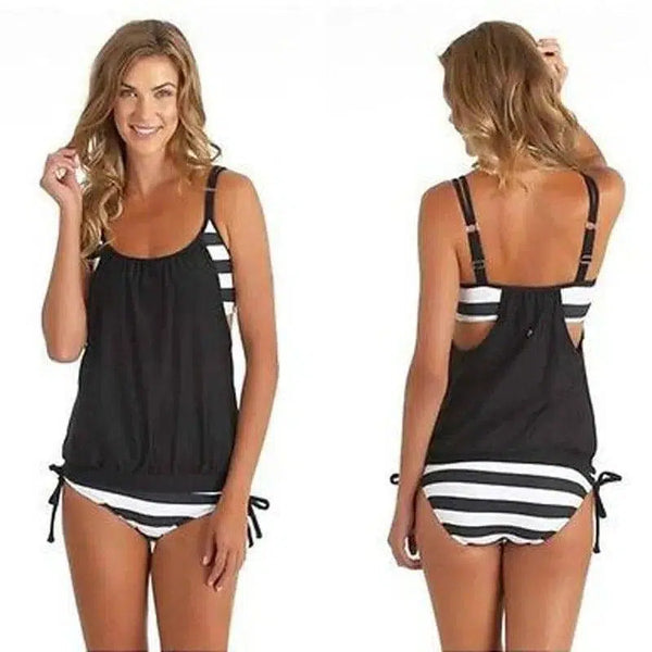 - Design: Swobodne jednoczęściowe bikini w stylowe paski