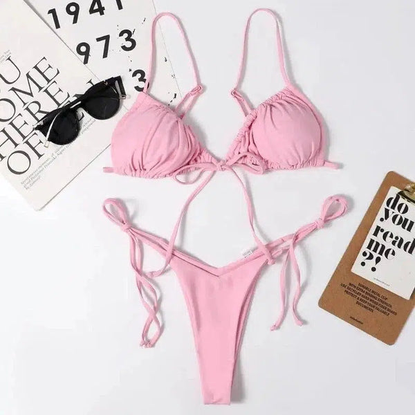Opis produktu: Damski strój kąpielowy - stringi Solid Color Split Drawstring