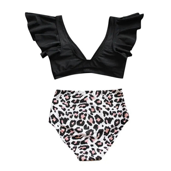 Dwuczęściowy strój kąpielowy w panterkę z wysokim stanem