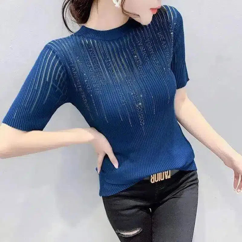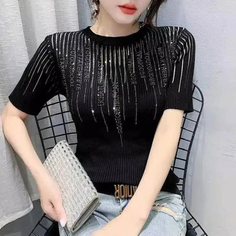- Subtelny połysk: Zintegrowany z delikatnymi iskierkami, ten top wnosi subtelny, ale odważny element do Twojego stroju, czyniąc go wyróżniającym się elementem.