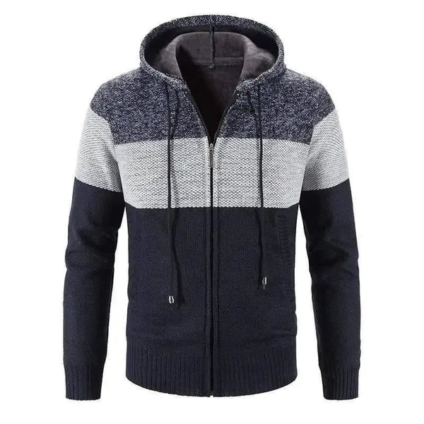 Sweter męski Gruby zamek błyskawiczny Wełniane swetry z kapturem Płaszcz w paski