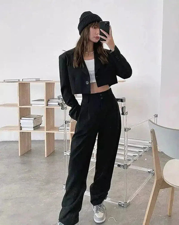 Damski casualowy zestaw marynarka i spodnie z wysokim stanem