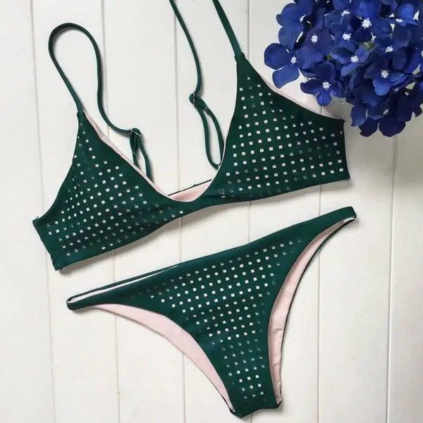Stroje kąpielowe z zielonymi ramiączkami do połowy bioder