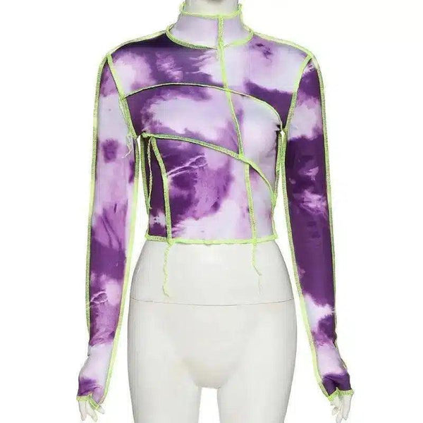 Top z długim rękawem z wiązaniem z przodu i wysokim dekoltem